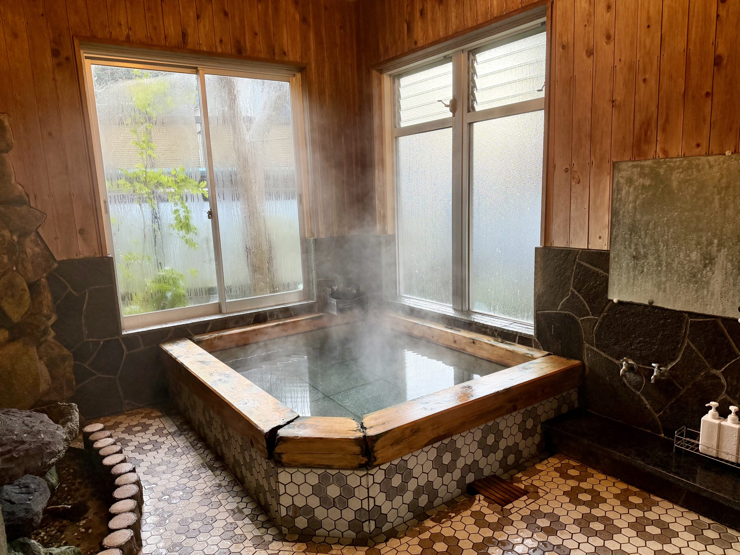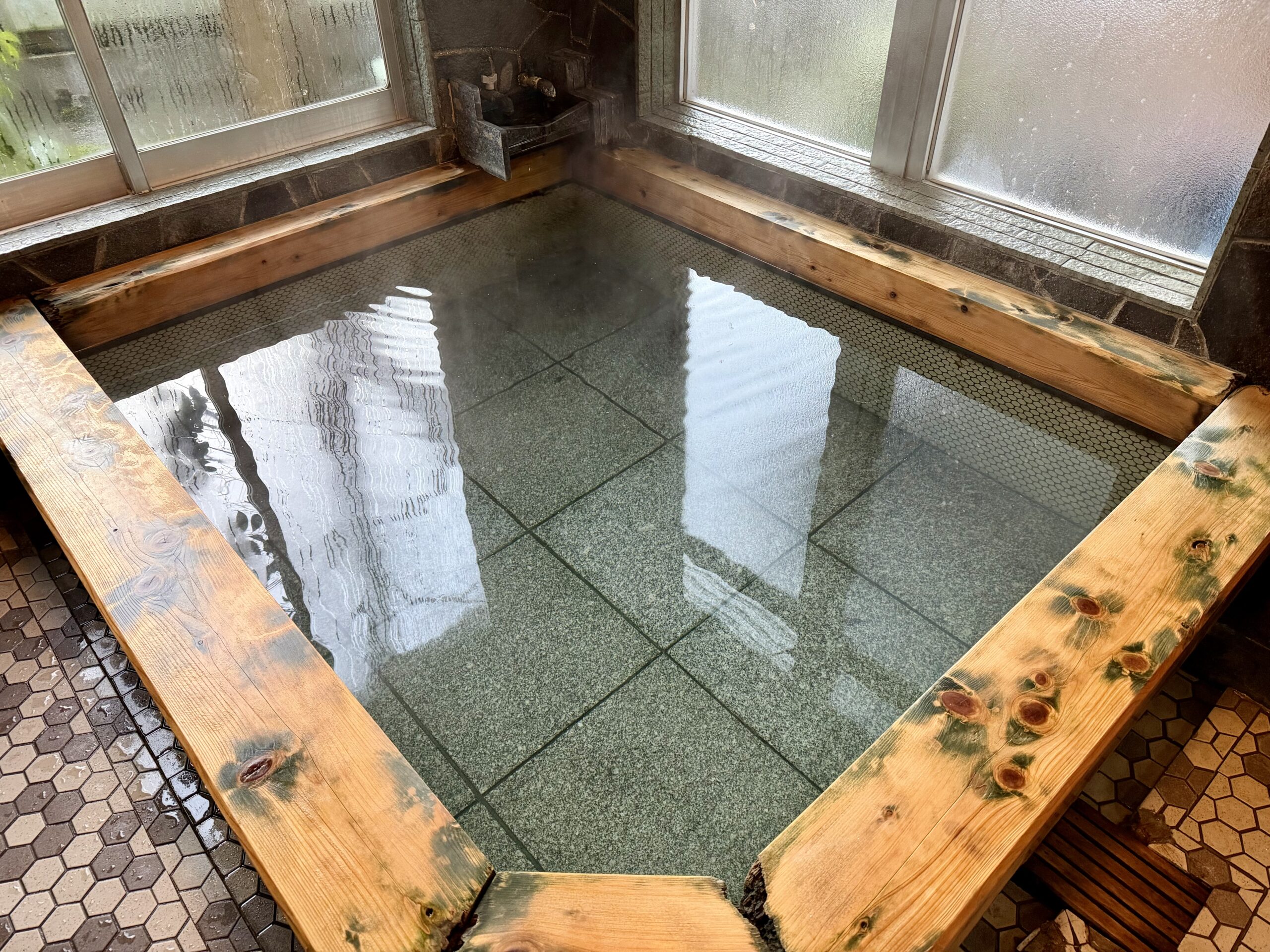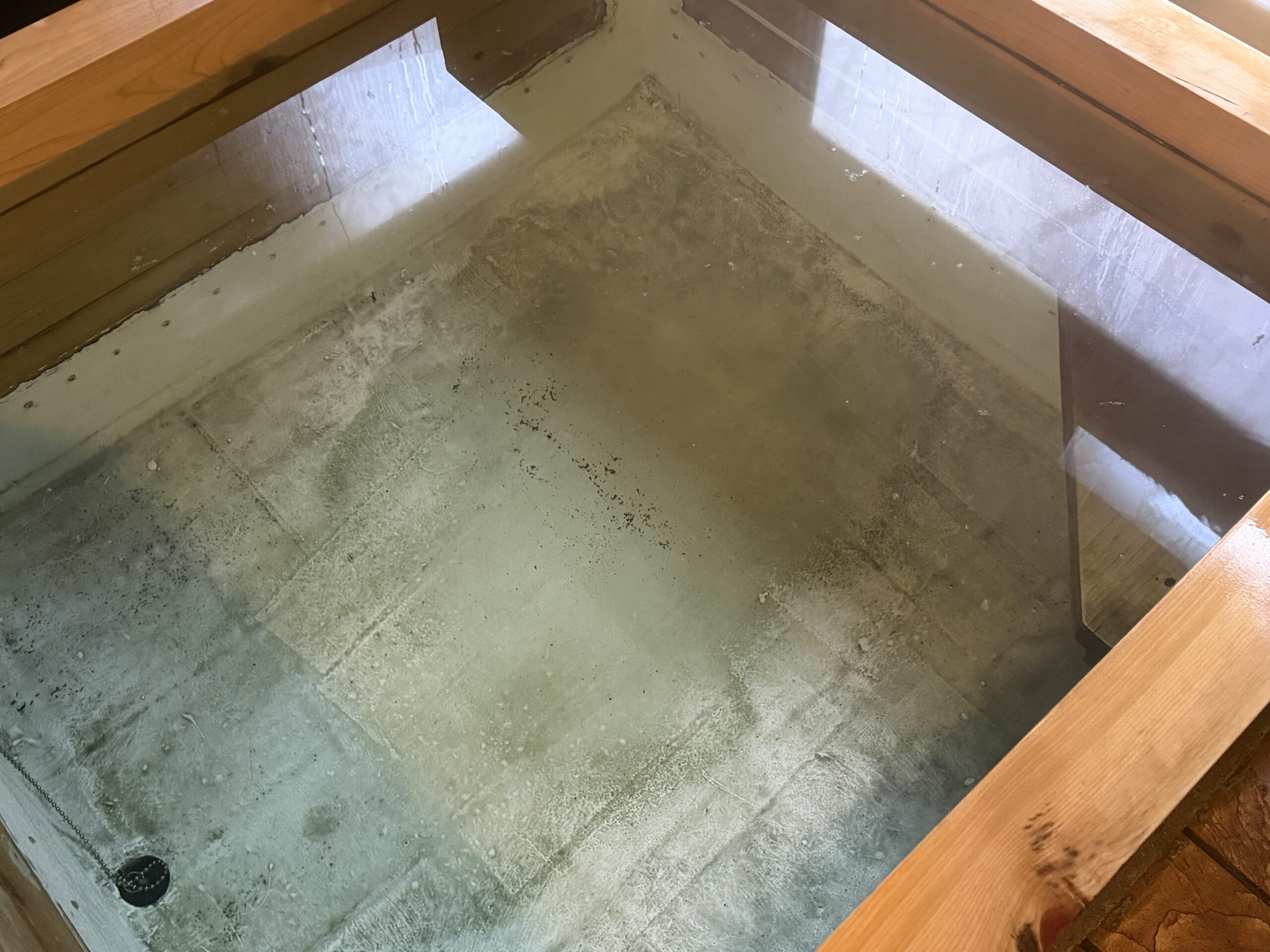 pH 9.1のアルカリ性。ぬるぬるの湯感触で、泡付きがすごい。加温の行程で泡を含むのか、新鮮だからなのか分からないけど、とにかくすごいあわあわ。