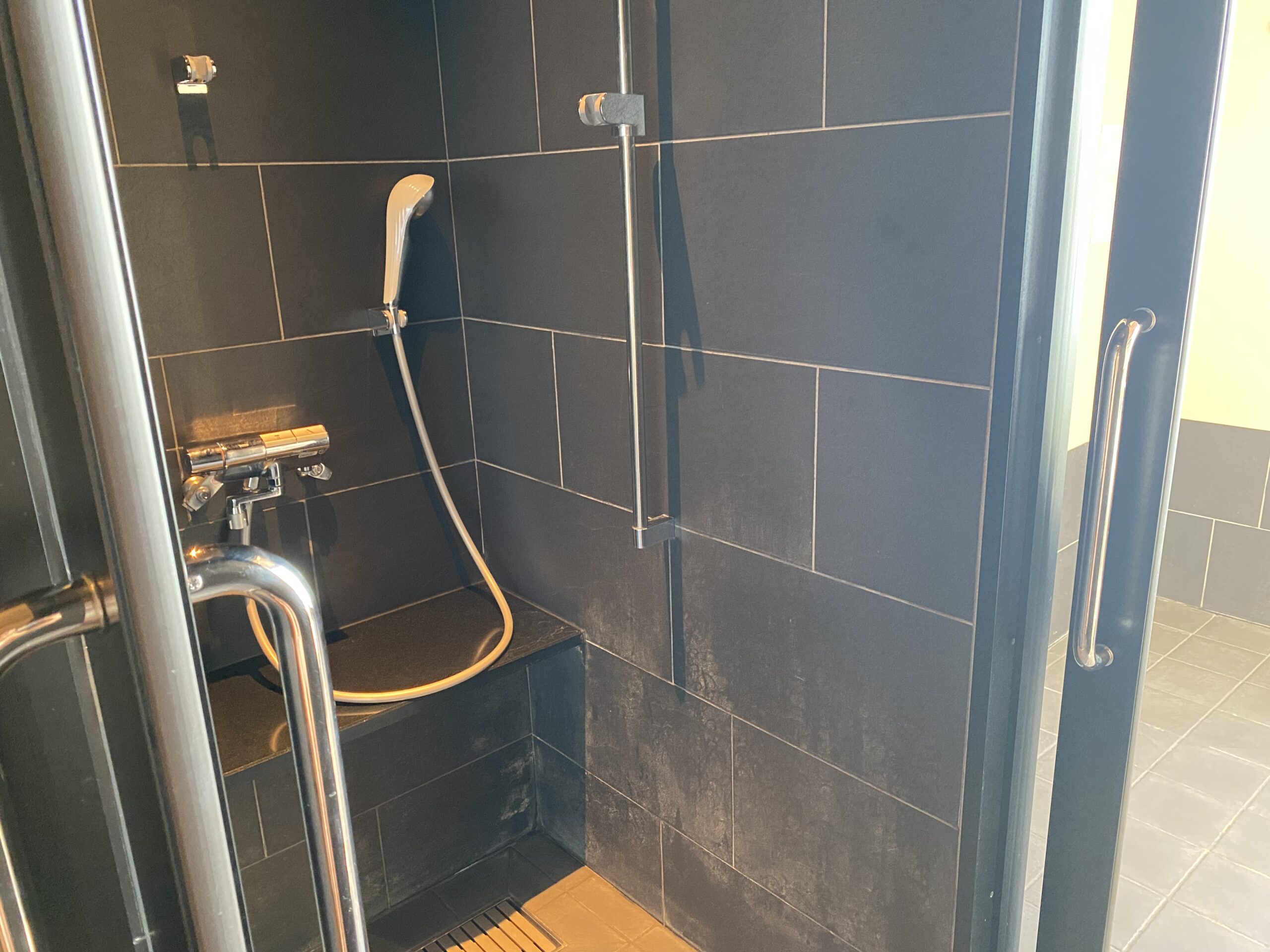 左手が洗い場。深めの仕切りがあり、スペースもゆったり。シャワーは14個かな。洗い場も全部畳敷き。