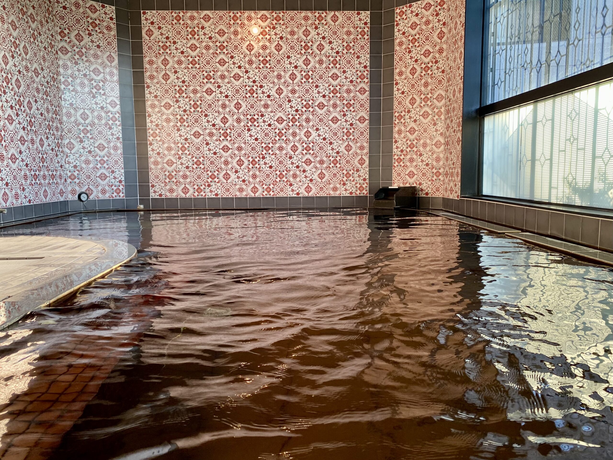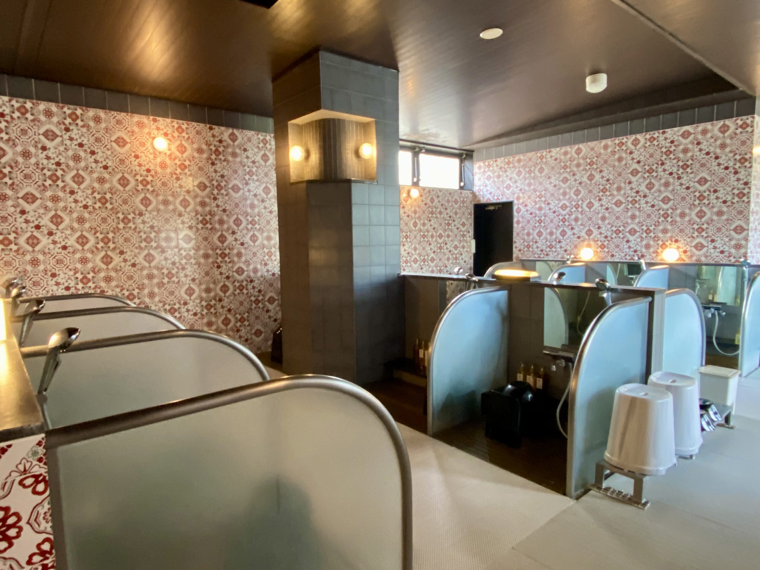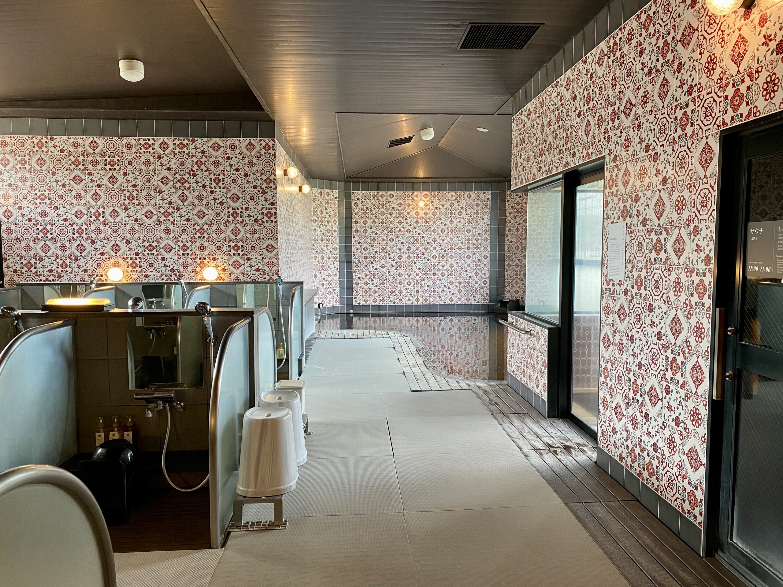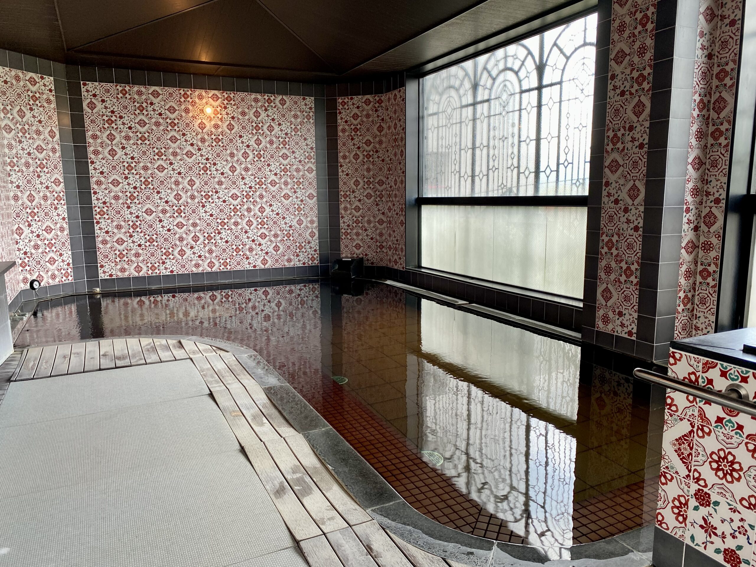 2022年にリニューアルされた大浴場。3階に男湯、2階に女湯があり、利用時間は夜中の1時までで、朝は4時から9時半まで。