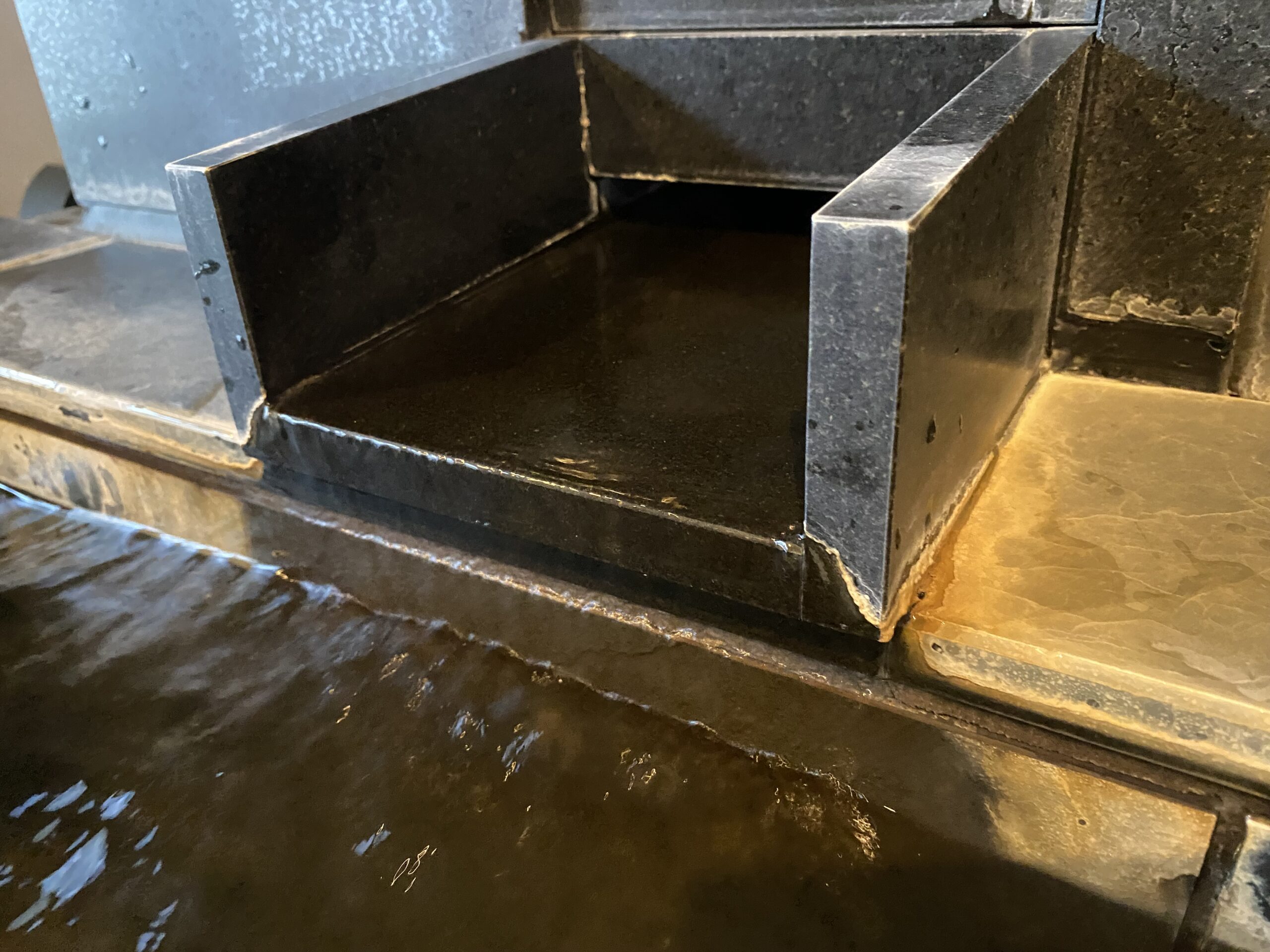 外に溢れ出るのではなく、こちらから排湯されるみたい。側面が少しぬるりとする。