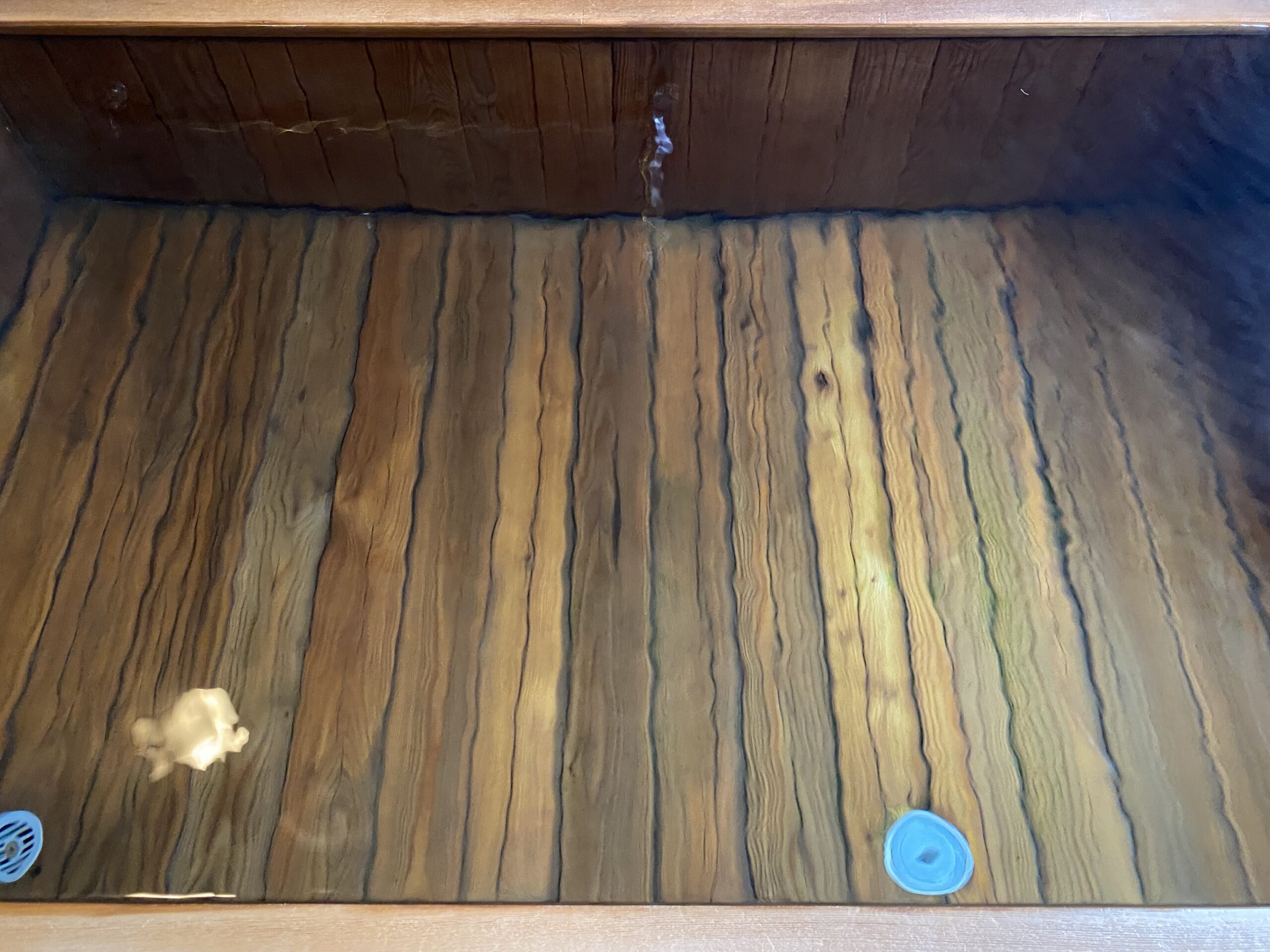 2つが接しているこの縁と縁の間から排湯されてる。どちらの浴室もありきたりじゃない湯の流れで、興味深いな。