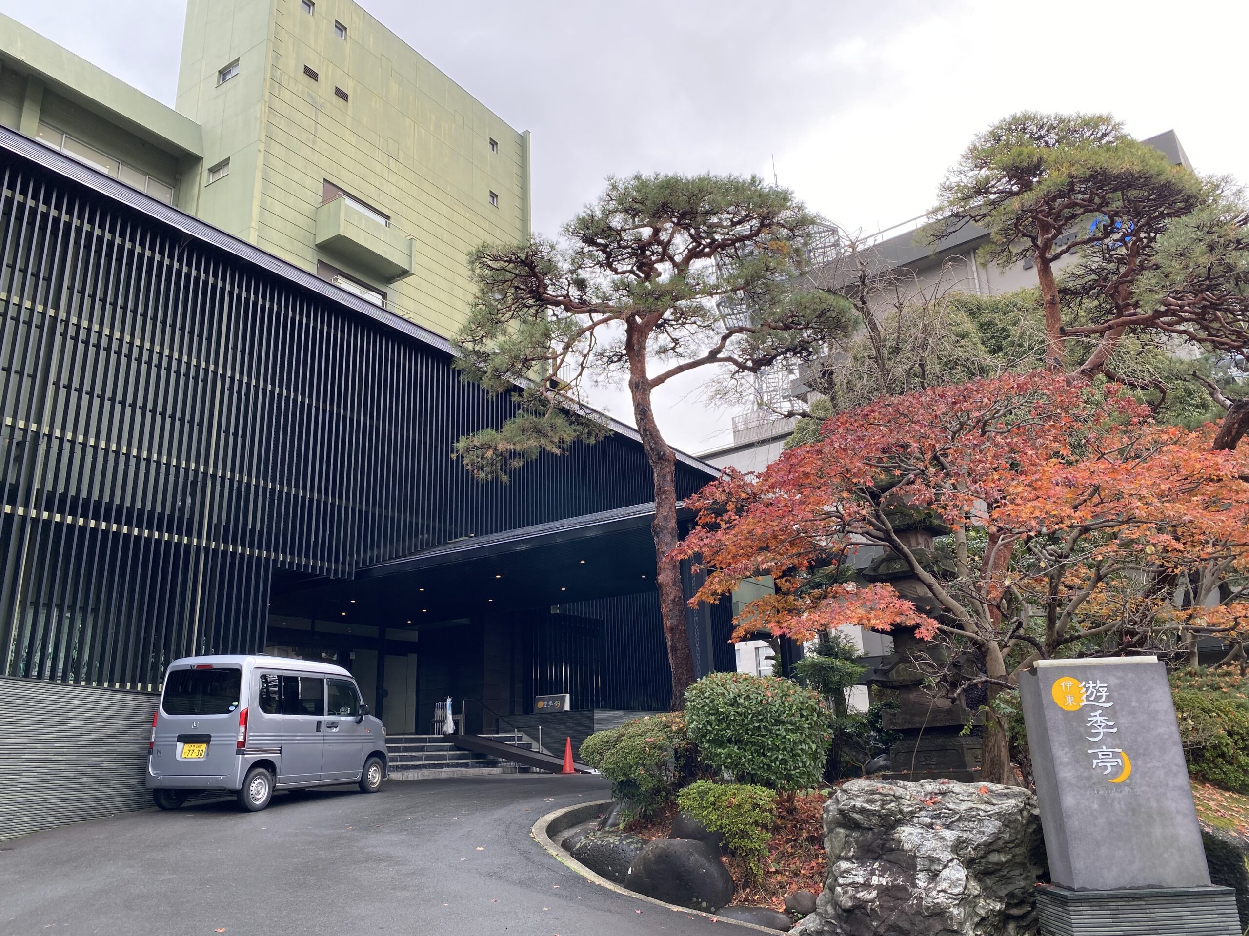 熱海駅から伊東線に乗り換え20分ちょっとの伊東駅。こちらの宿は伊東駅からのタクシー送迎が無料で3分ほど。温泉街を歩いても10分弱。乗り換え次第では東京駅から1時間半ほどで宿に着く。
