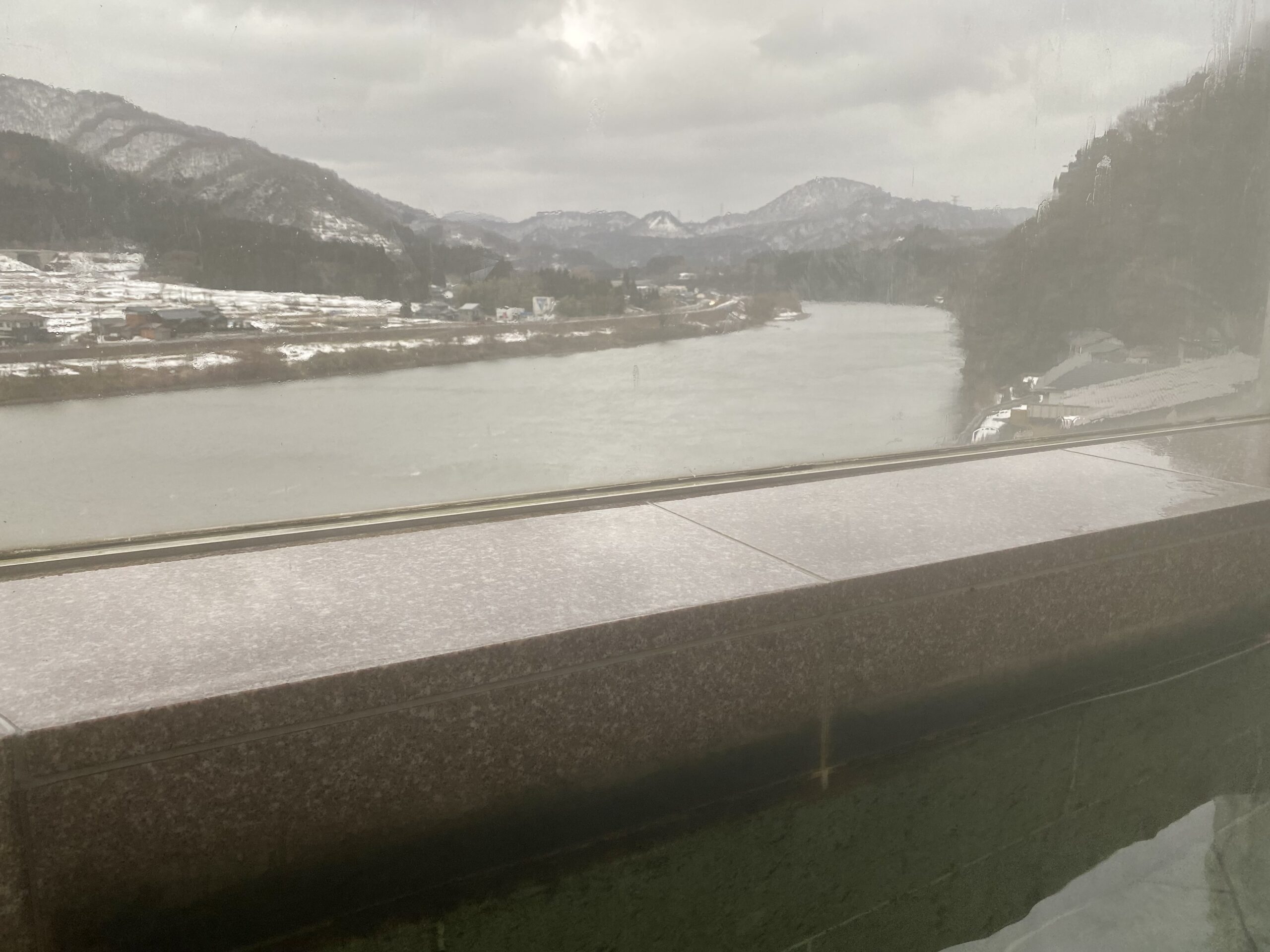 浴室も広い。大きな内風呂が窓際にあり、ガラス張りで阿賀野川の眺望が素晴らしい。