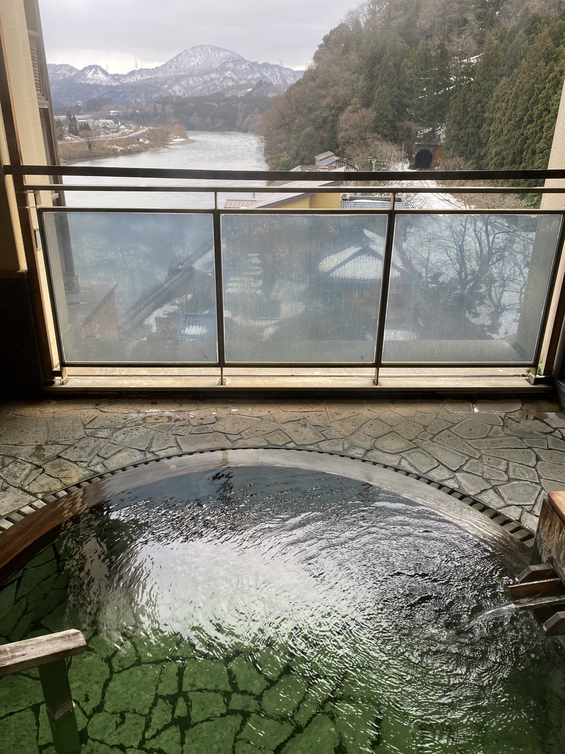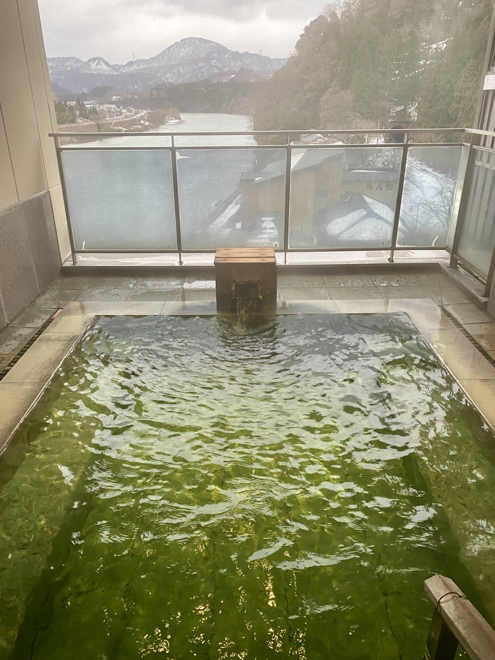 冬だから余計にそう見えたのかもしれないけど、鄙びた風情ある温泉地。グリーンの透き通った源泉かけ流しは、無視できない新潟の温泉。
