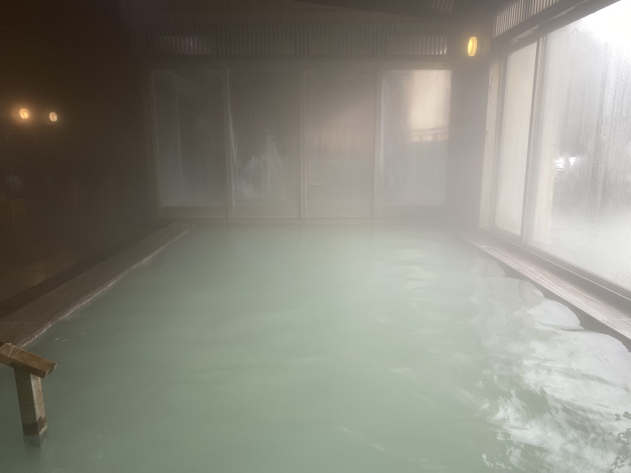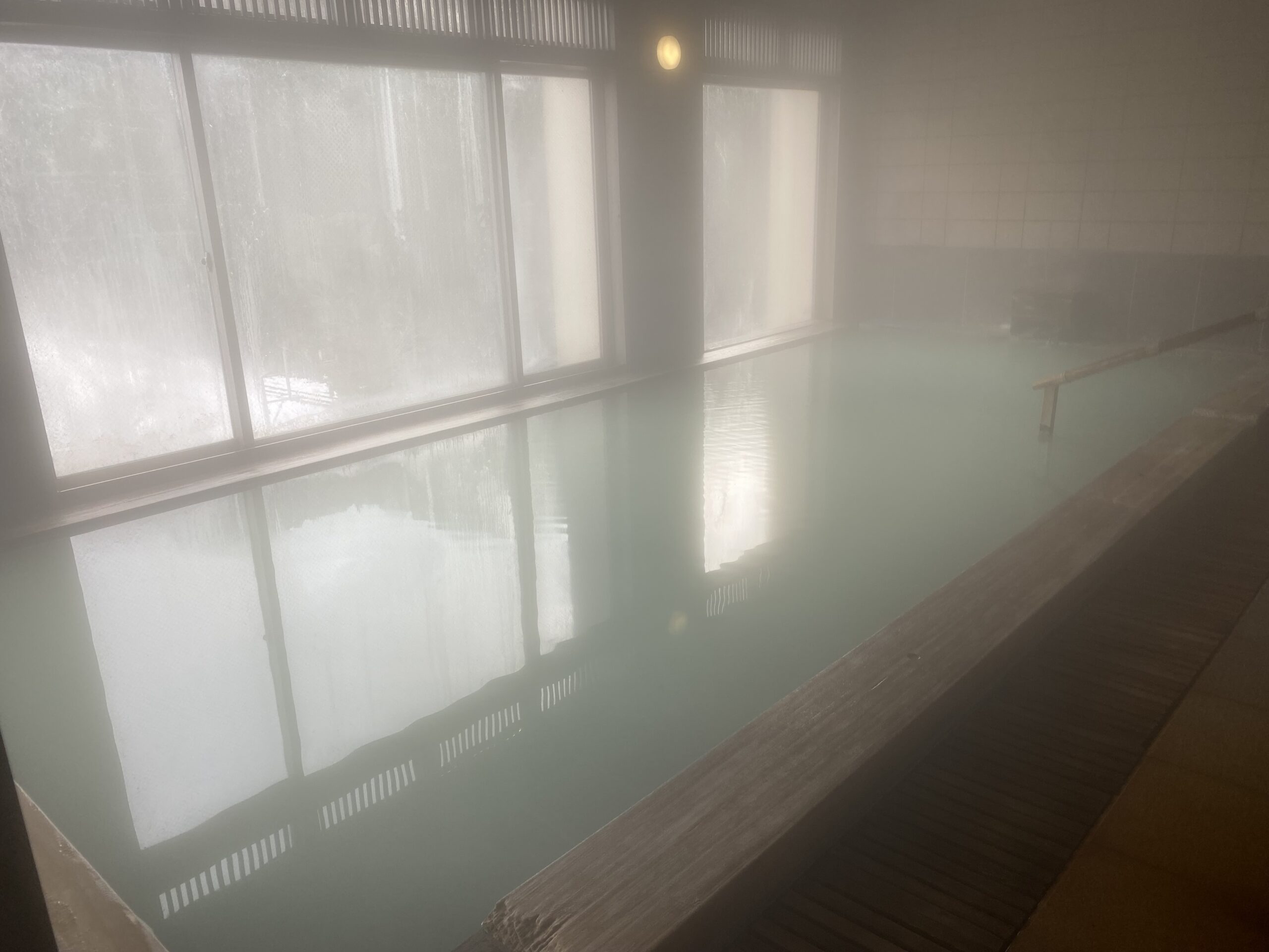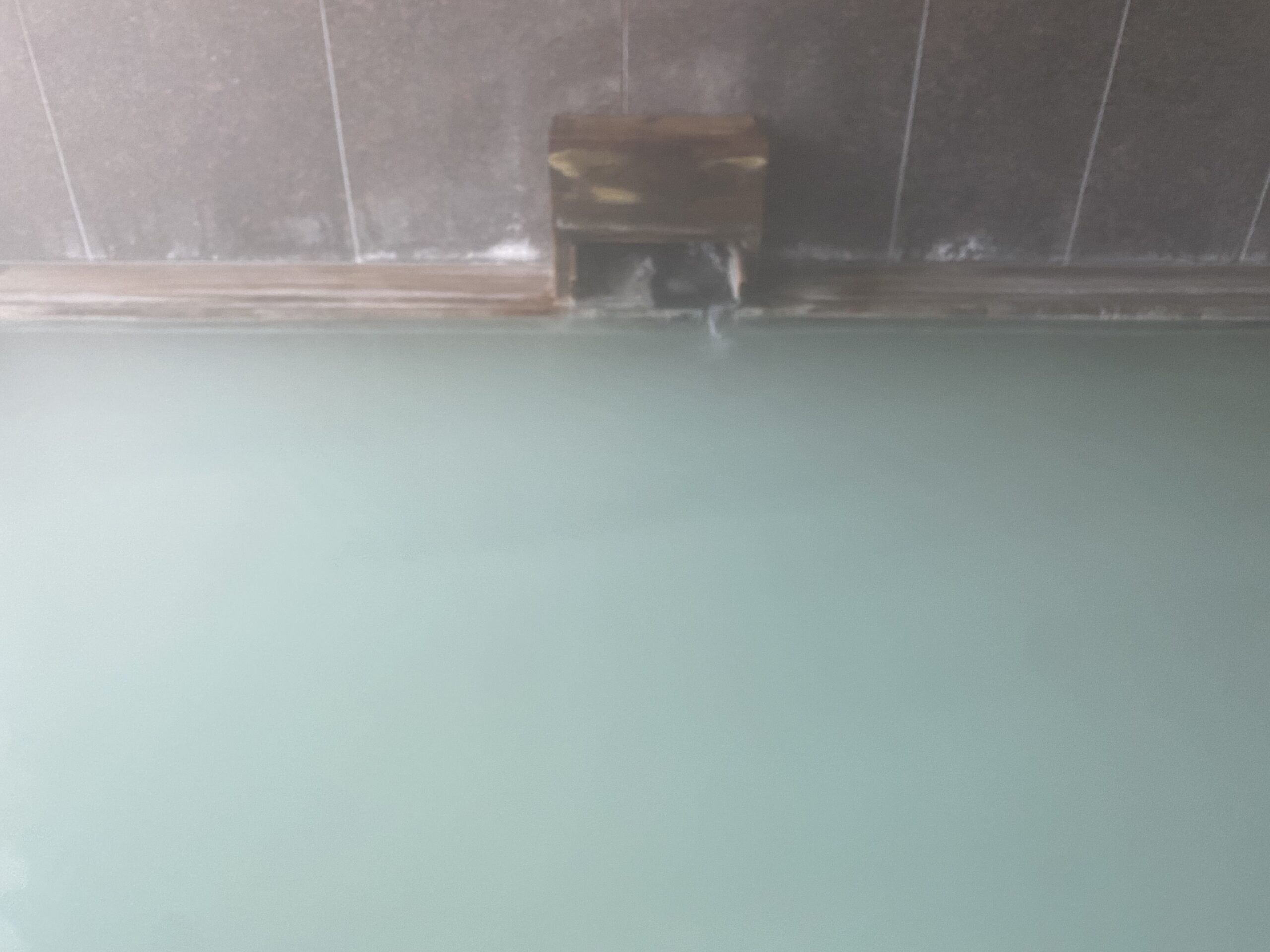 ブルーがかった乳白色の濁り湯。たまたまなのかな。それとも翌朝はこんなものなのか。水鏡の内風呂は完全な循環だったけど、こちらはかけ流しの併用だからなのか。