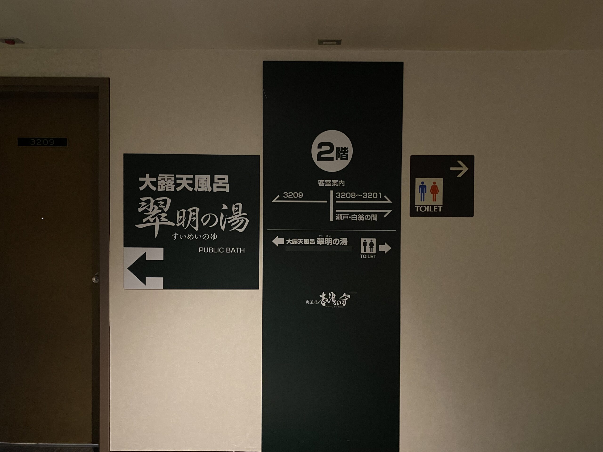大露天風呂「翠明の湯」は本館の2階から。東側エレベーターで。
