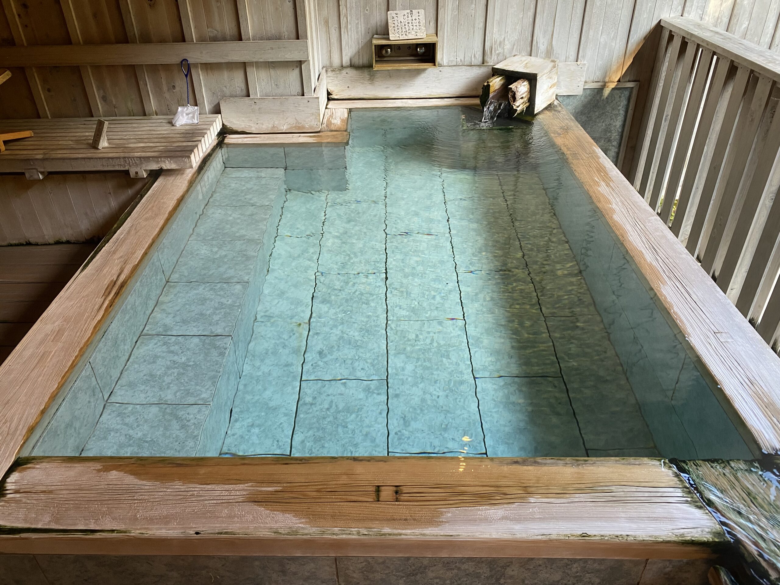 大浴場は完全なかけ流しじゃないと思ってたから、かけ流し湯船があることに驚いた。毎分400ℓと豊富な湧出量。