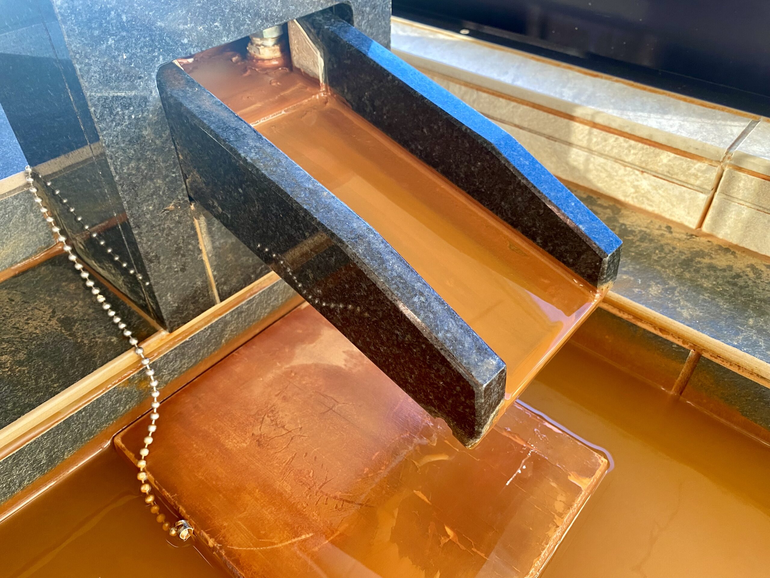 湯口も鮮やかなオレンジ色で、触るともちろん色が付く。