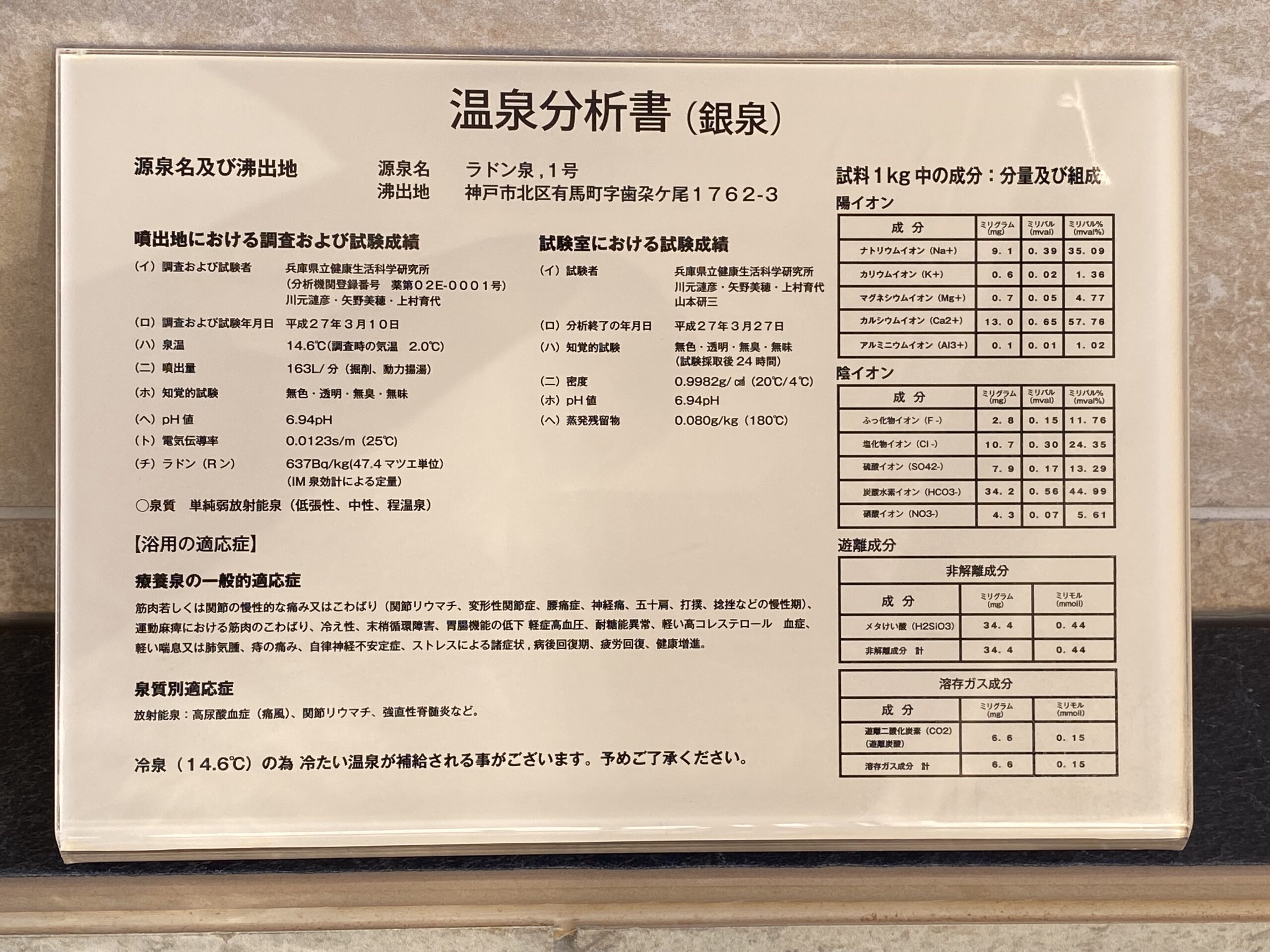 銀泉は大浴場と違う源泉だった。けど、ほぼ同じ住所のラドン泉,1号源泉。源泉温度が14度と、2号源泉より10度以上冷たい冷鉱泉。