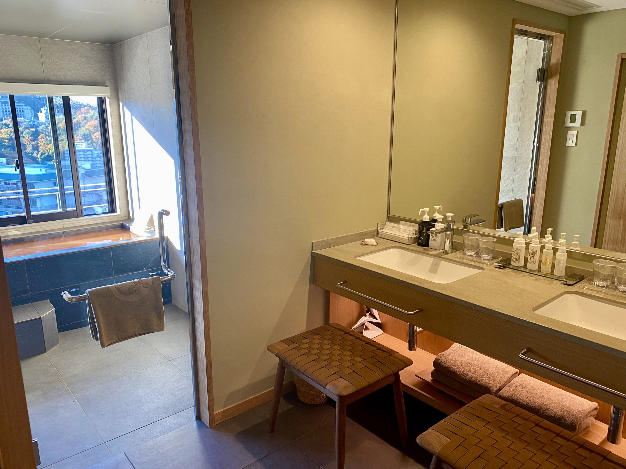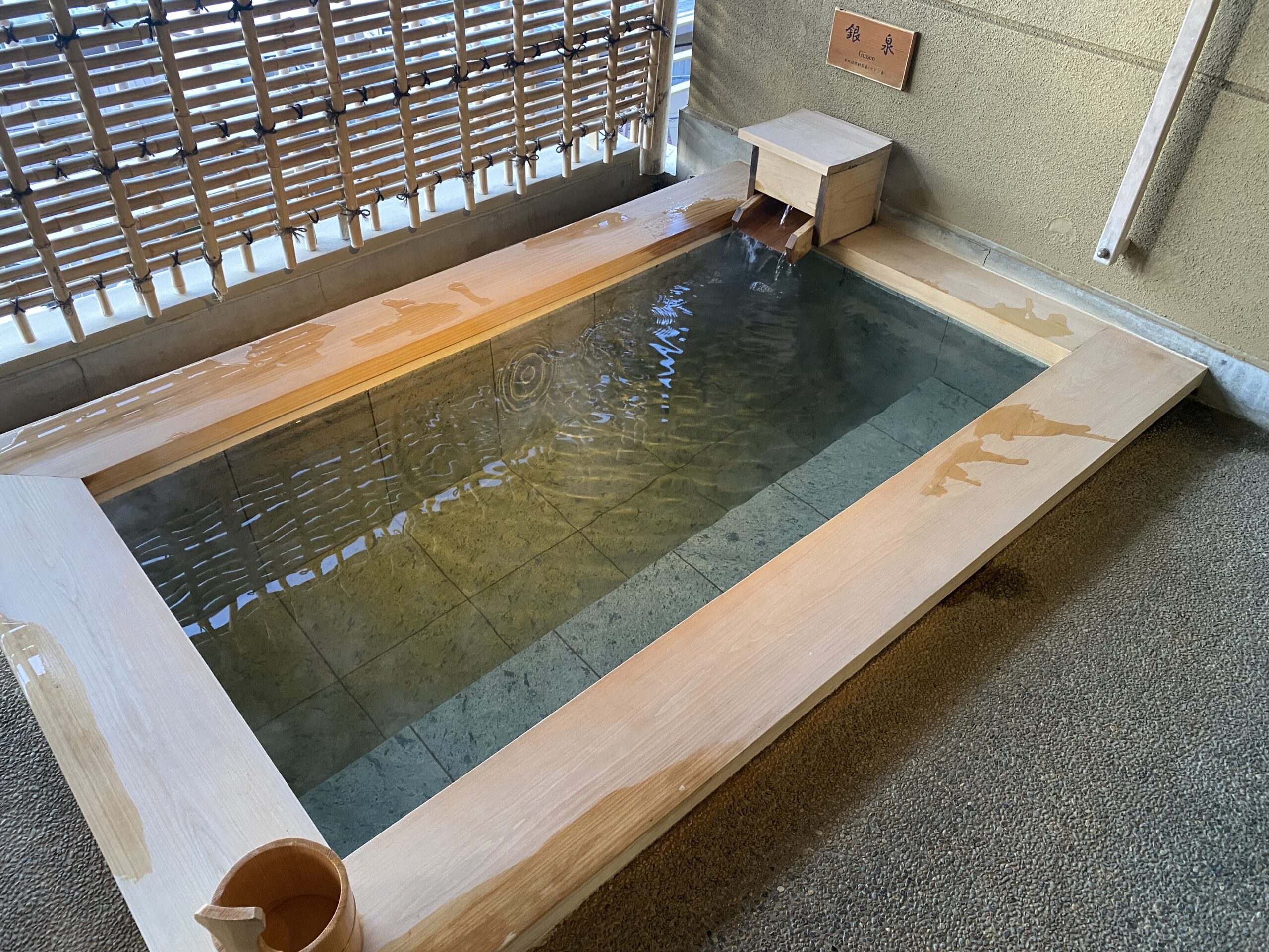 なんと金泉と銀泉の両方の湯船が付いている大贅沢な部屋。