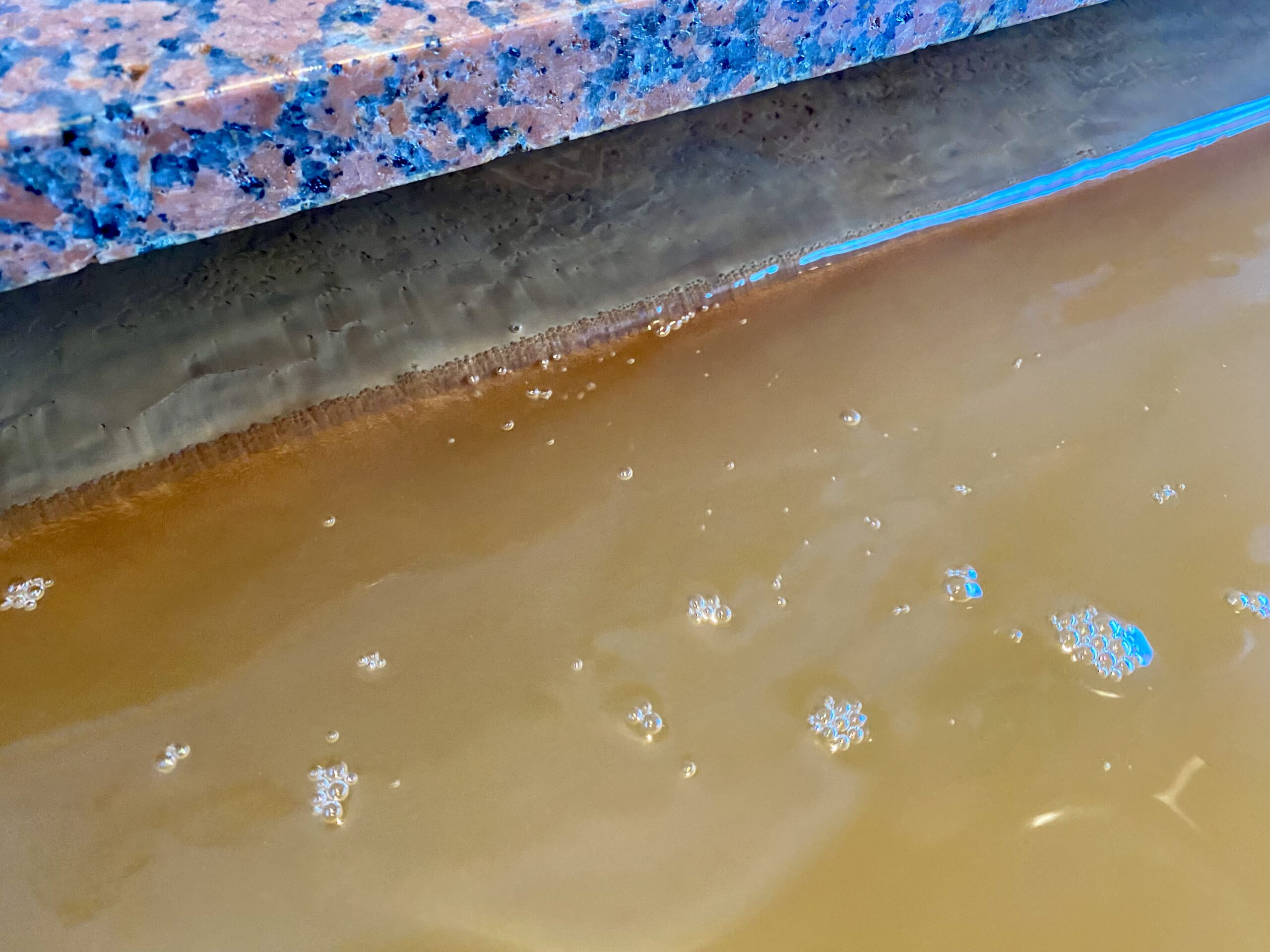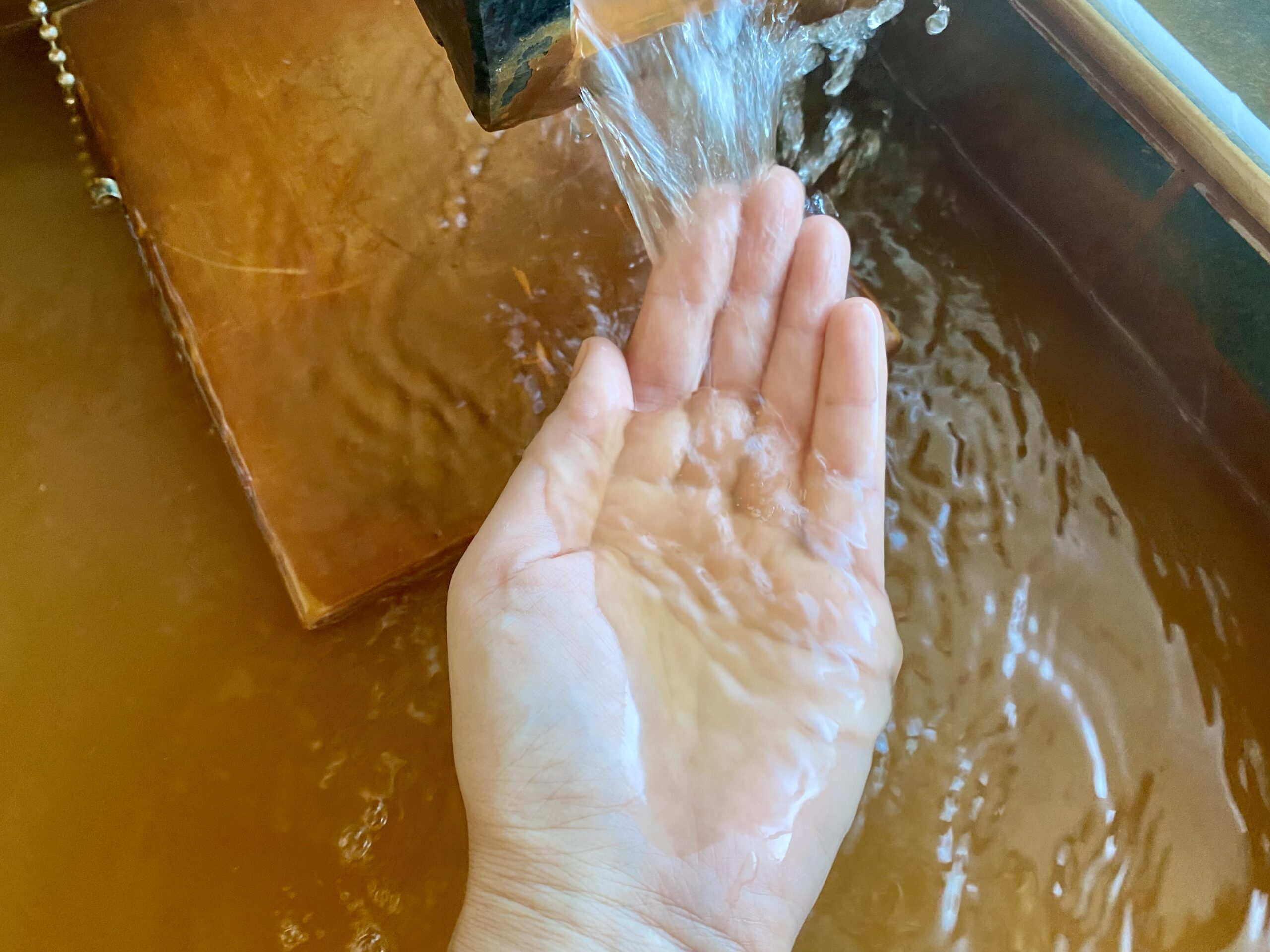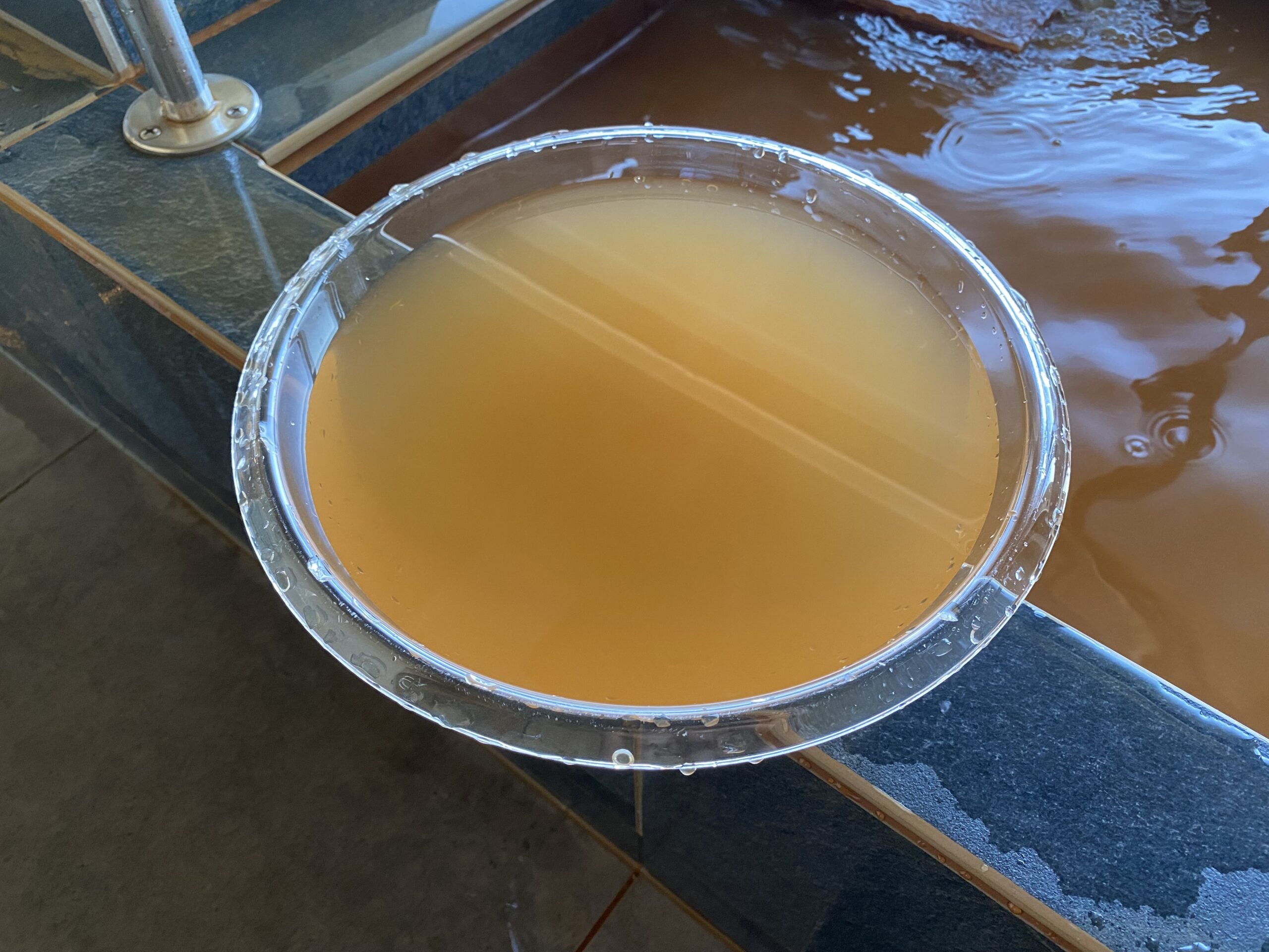 こんなに⁉︎って思うほどのオレンジ色に酸化した金泉。元は透明な源泉。
