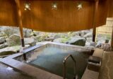 夜ごはん前に行ったけど、こちらも独泉。広い脱衣所。この川沿い露天風呂は日帰りでも利用できる。日帰りの時間は10時半から14時。