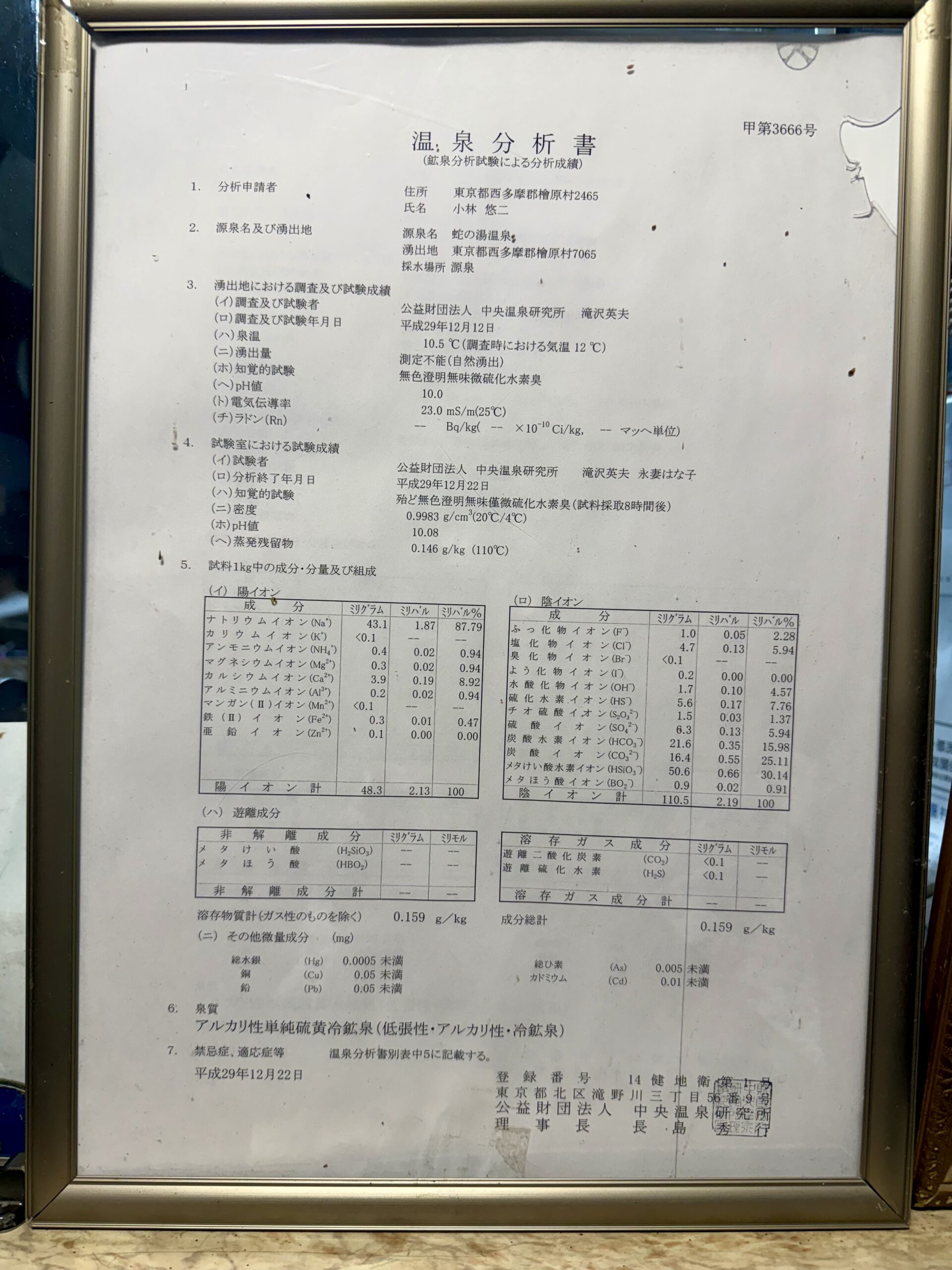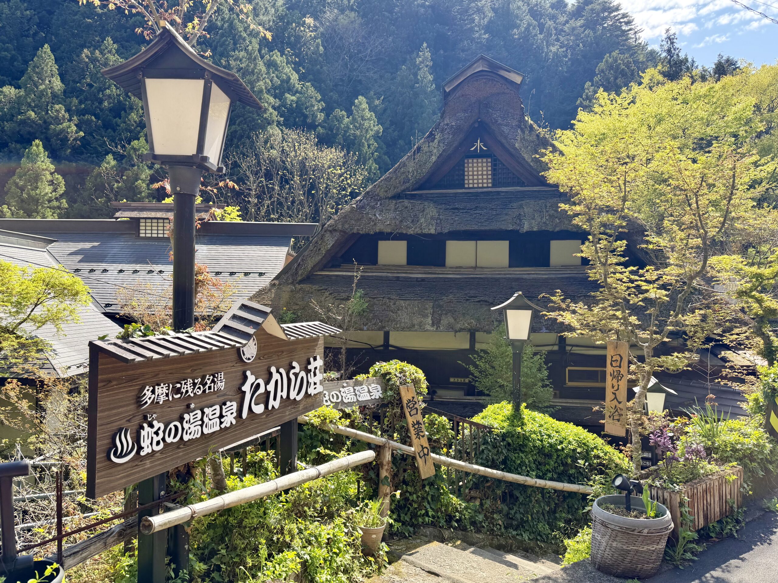 江戸時代、傷ついた大蛇が河原の湧き水で傷を治していたところを猟師が見つけたのが由来とされ、当時の文献「武蔵野風土記」にも記載されてる古い温泉だけど、関東大震災で泉源が絶たれたそう。