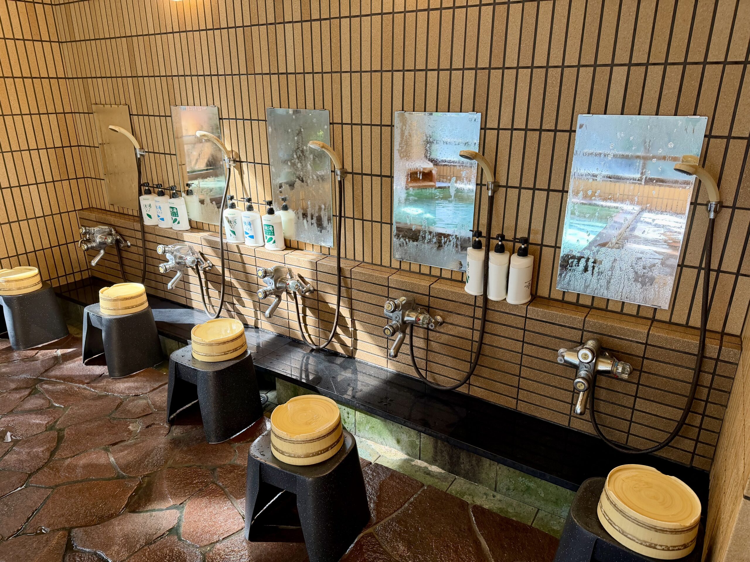 洗い場にはシャワーが5つ。全5室の宿で、食事以外で人と会うことなく、お風呂も独泉だったので、5つもあるんだと思うほど。