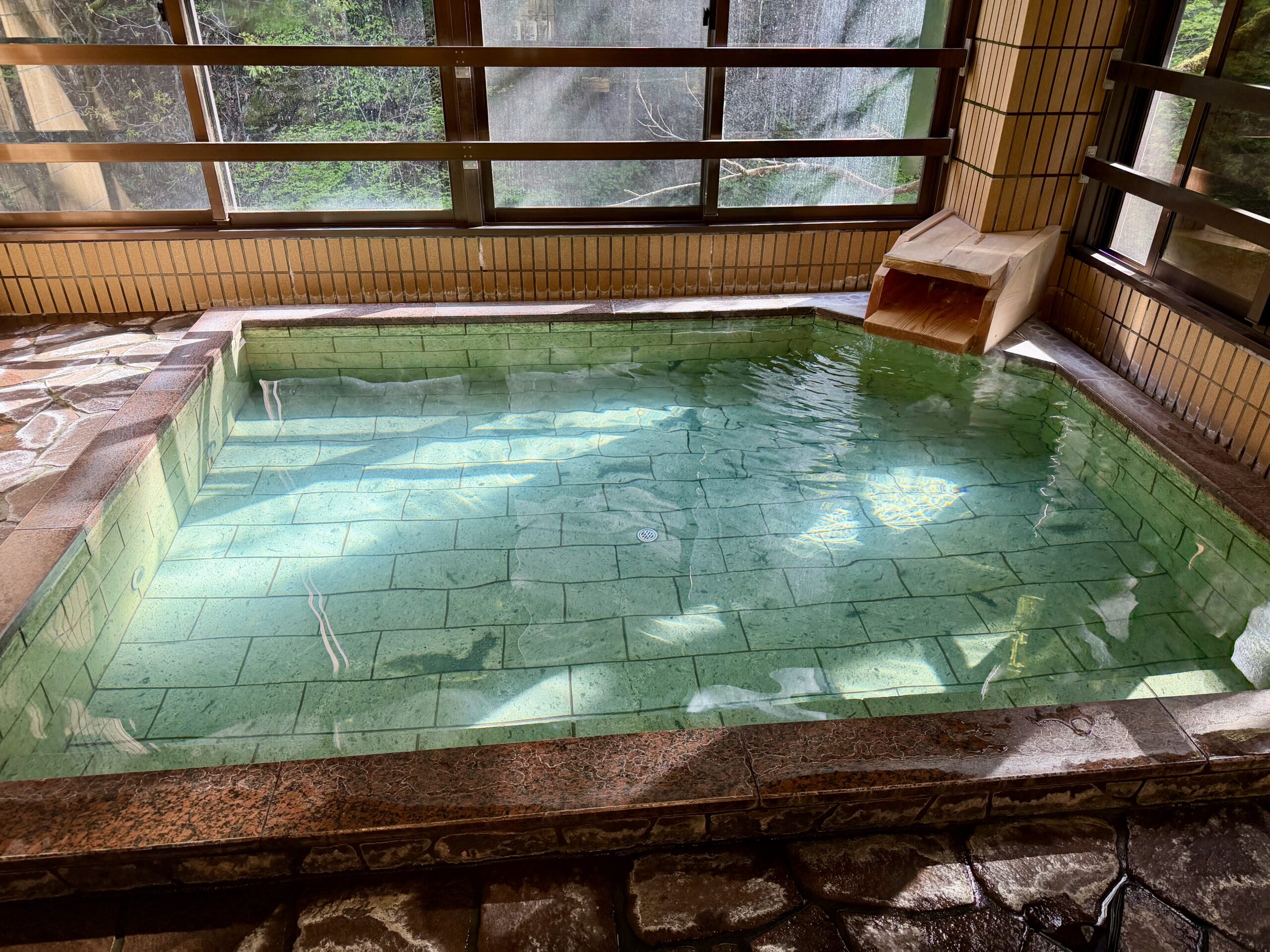 秘湯を守る会のHPには、浴槽は循環濾過だけど、給湯口は源泉とあるけど、この日は湯船と同じ41度の湯が注がれてた。匂いもなし。