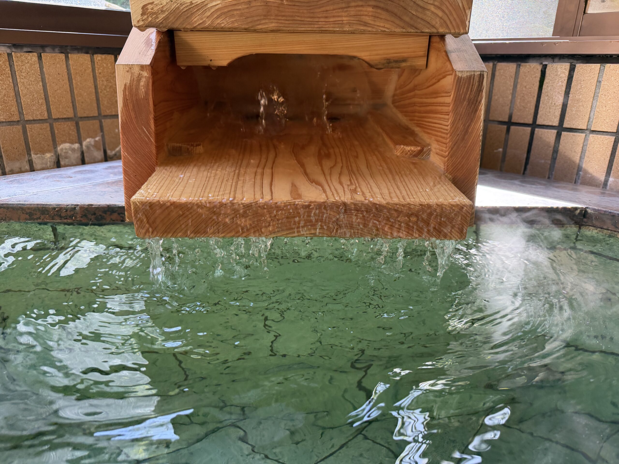 泉質はアルカリ性単純硫黄冷鉱泉。硫黄の匂いはしないけど、塩素臭も気にならない。