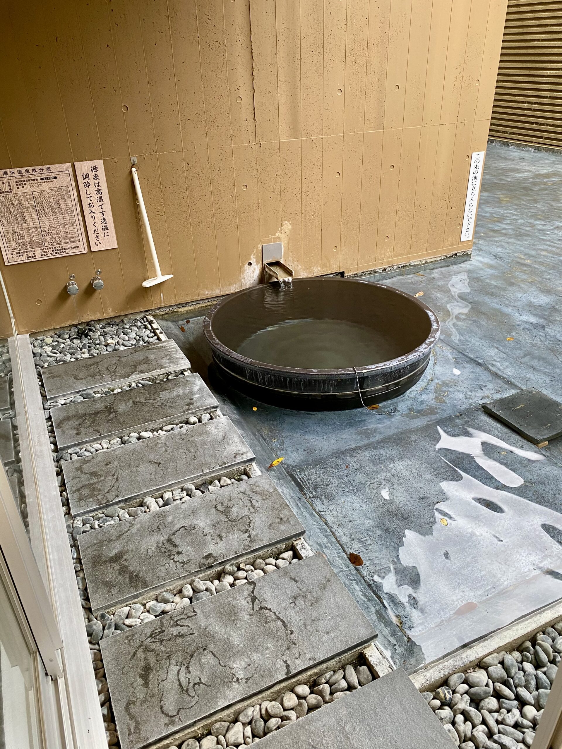 謎に池の中にある湯船。入りづらそうで、私は入らなかった。今写真見ながら、どうやって入るんだろうと疑問に思った。手摺りも段差もない。