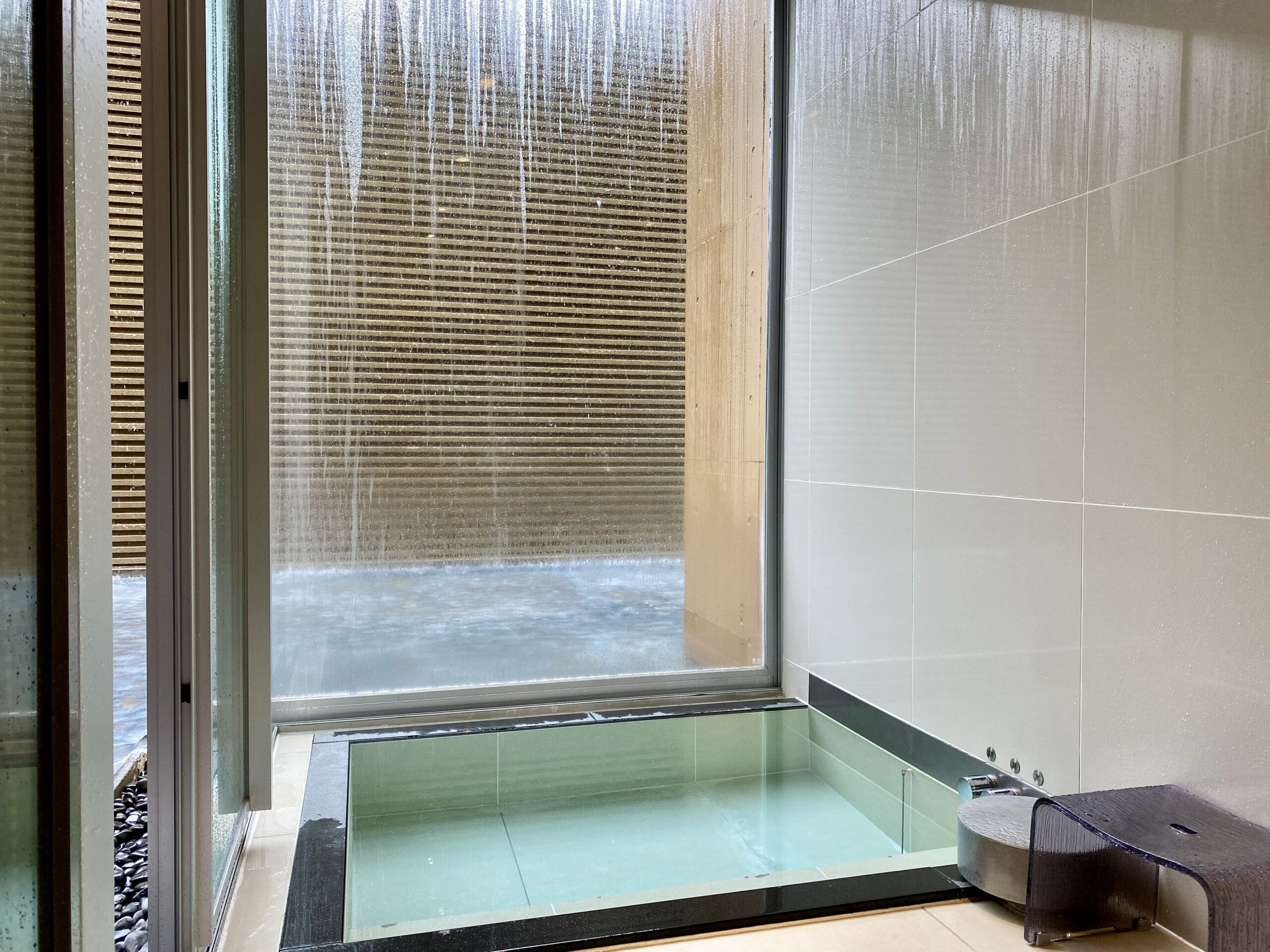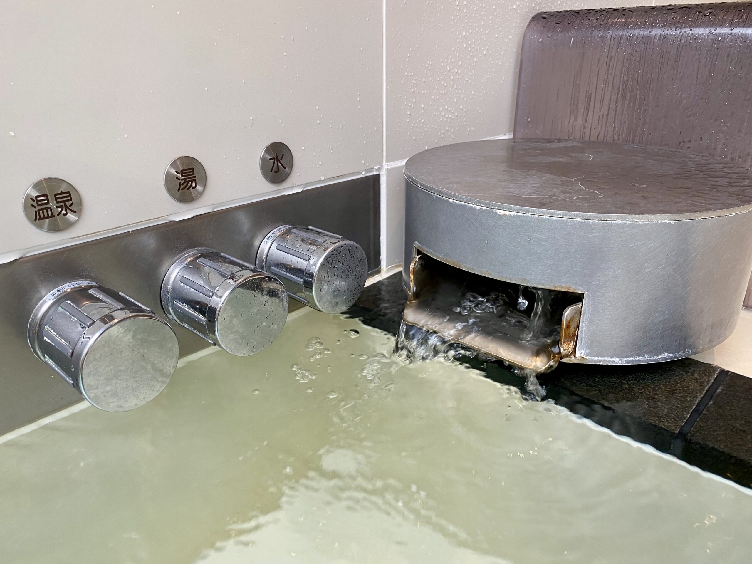 深さもあるゆったりサイズの湯船なので、底の方がぬるくなると、湯温回復させるのに少し時間がかかるけど、自由に出したり止めたりできるので、好みの湯温で入れる。