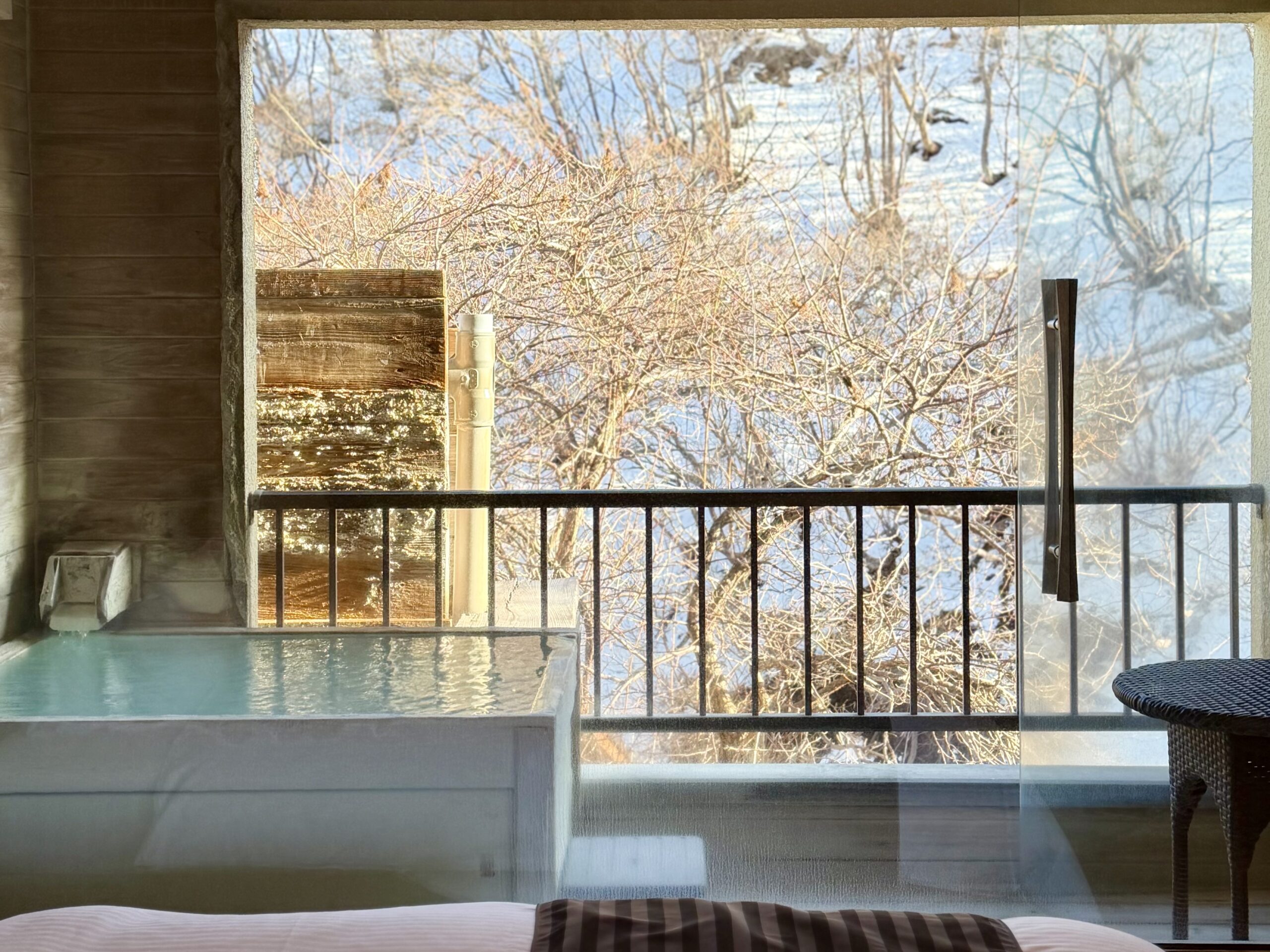 部屋の露天風呂は、大浴場の露天風呂と同じ源泉の滝の湯。