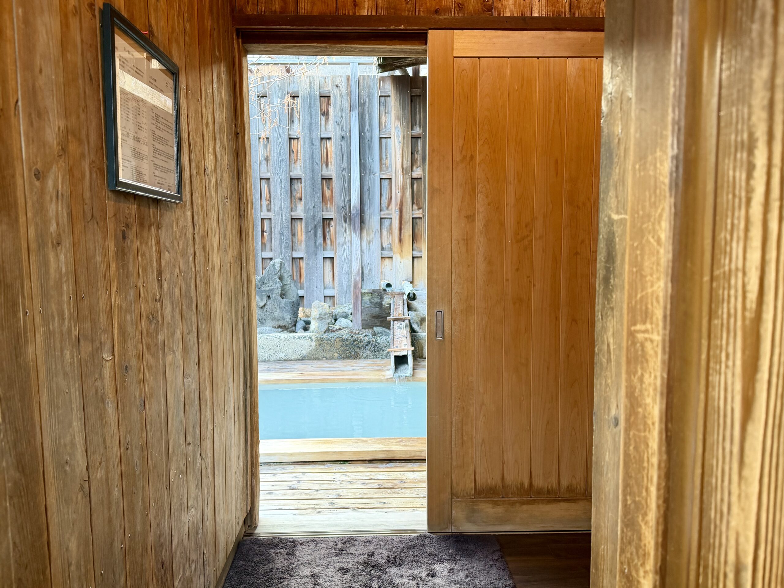 貸切風呂は1つだけで、木札と出入り口のスリッパの有無で、空いてるかどうか分かる。