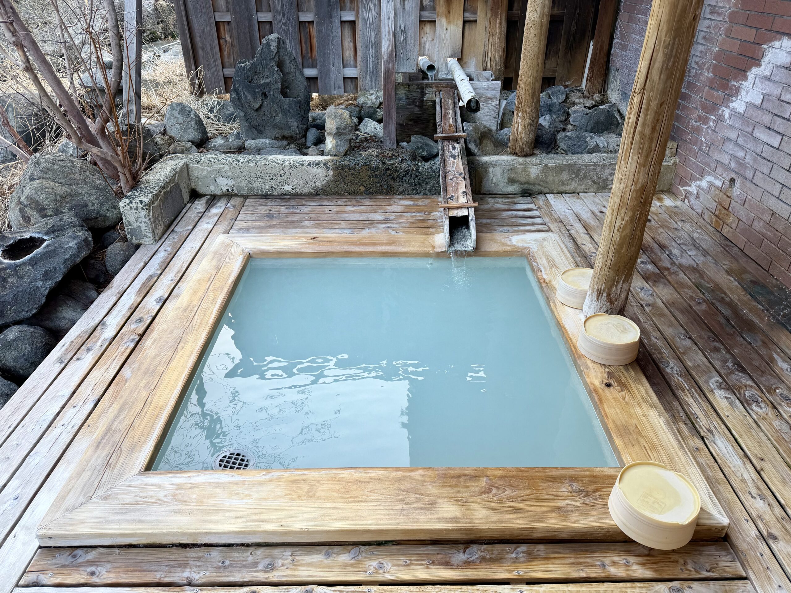 湯口からは44.5度の源泉が注がれ、湯船は40.5度と、思いがけずいい温度だった。もう少し熱いのかなと想像してた分、余計うれしい。